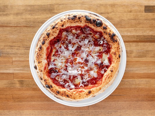 Pomidory San Marzano, mozzarella fior di latte, Nduja (pikantna kalabryjska kiełbasa), Grana Padano D.O.P.